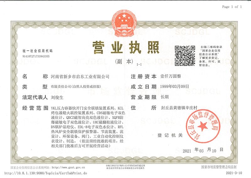 河南省新鄉(xiāng)市啟東工業(yè)有限公司始建于1987年,是專注研發(fā)、生產(chǎn)自動(dòng)化儀器儀表(主要與壓力容器、鍋爐等容器配套使用)的廠家。主要產(chǎn)品有液位計(jì)(磁敏雙色型、磁翻柱型等)系列、烤包器熄火聯(lián)控裝置系列、壓力容器快開(kāi)門(mén)安全聯(lián)鎖保護(hù)裝置系列、鍋爐報(bào)警器系列。二十多年來(lái),公司產(chǎn)品暢銷(xiāo)國(guó)內(nèi)并遠(yuǎn)銷(xiāo)俄羅斯、蒙古與東南亞,深得廣大用戶的信賴和好評(píng)。我們多年來(lái)致力于自動(dòng)化儀器儀表的研制生產(chǎn),公司現(xiàn)具有完善的生產(chǎn)、試驗(yàn)、檢測(cè)手段和設(shè)備。科技創(chuàng)新、誠(chéng)信服務(wù),是我們不變的經(jīng)營(yíng)理念,我們將以強(qiáng)有力的技術(shù)支持及售后竭誠(chéng)為客戶提供良好的服務(wù)。  2012年我公司成功研發(fā)了KCL系列烤包器熄火聯(lián)控裝置,并于2013年2月2日榮獲中華人民共和國(guó)國(guó)家知識(shí)產(chǎn)權(quán)局辦法的《實(shí)用新型**證書(shū)》<**號(hào):2021202257735>該產(chǎn)品廣泛應(yīng)用于唐鋼等大型鋼鐵企業(yè),為烤包器安全作業(yè)提供了有力的保障。  2002年我公司成功研發(fā)磁敏電子雙色液位計(jì)獨(dú)特的高亮度LED紅綠雙色顯示,獲得了專家的首肯和用戶的一致好評(píng)。在此基礎(chǔ)上我公司研發(fā)人員十年磨一劍,致力于XQFB-1防爆型磁敏雙色液位計(jì)的研發(fā),于2013年12月27日由國(guó)家防爆電器產(chǎn)品質(zhì)量監(jiān)督檢驗(yàn)中心檢驗(yàn)合格并頒發(fā)防爆合格證書(shū)<編號(hào):cnex19.0883>。該產(chǎn)品性能得到了充分的發(fā)揮,廣泛應(yīng)用于含有Ⅱ類A·B級(jí)T1-T4組可燃?xì)怏w或蒸汽與空氣混合形成的爆炸性混合物的0區(qū)、1區(qū)危險(xiǎn)場(chǎng)所。連接用戶DCS或PLC系統(tǒng)實(shí)現(xiàn)遠(yuǎn)距離集中顯示和控制,從而實(shí)現(xiàn)節(jié)能、數(shù)字化管理。為用戶增加了一定的經(jīng)濟(jì)效益和社會(huì)效益,。2014年公司成功申請(qǐng)了夢(mèng)潤(rùn)儀表的logo,新的品牌新的形象,夢(mèng)潤(rùn)儀表是啟東的LOGO, 歡迎新老用戶前來(lái)洽談合作。  我們一如既往地注重科研的投入,憑借產(chǎn)品的不斷更新、加大科技含量,進(jìn)一步拓展市場(chǎng)。我們相信品質(zhì)成就未來(lái),以過(guò)硬質(zhì)量、優(yōu)惠價(jià)格、完善的售后服務(wù)熱忱歡迎廣大客戶來(lái)我司視察指導(dǎo)、洽談業(yè)務(wù);精誠(chéng)合作,共創(chuàng)輝煌!